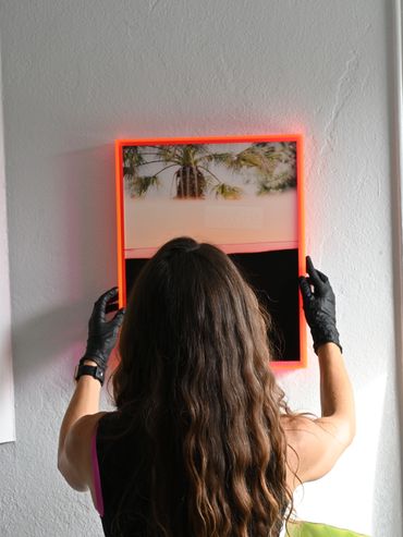 Gia: I'm such an LA girl: I find a lot of inspiration out and about in the world, and wherever I'm running or driving, in particular. There's a way you learn to (scan and) see very quickly when you're driving or running, similar to how you see when you set out to make a photograph. Plus, you're out with all the signs, and signs are things I revisit from time to time in my work. My Colorwash series was originally inspired by my love of the drive-through car wash -- they just throw all those pastel colors on the panel of the windshield! It's such a happening. Sometimes I'll be stuck in traffic behind a truck and think, wow, that chain swinging on the door has left a gorgeous gesture. I love watching the shadows and reflections of things as I pass, and that has found its way into my Reflections series. Salt for Salt, my new Morse Code Series, evolved specifically out of photographs I made on the run. And the series I'm deep into now is also inspired by running and driving up and down one mountain in Sicily.