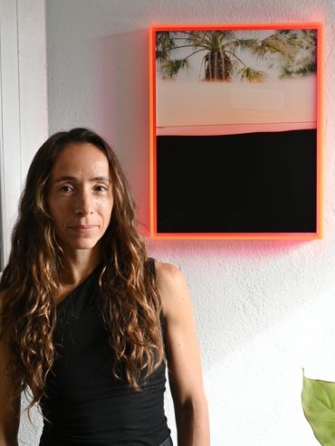Just before I left for Sicily, I was finishing Salt for Salt, a project I'd started in summer 2022 in Sardinia that works with photographs, largely made on runs, holographic material borrowed from my Reflections series, and hand-punched Morse code--mostly Q code and quotes from literature--to build a one sided narrative conversation. As with the Sicily work, this is "about" code, though Morse code can be understood across distance and darkness, whereas the directional signs are so in person. There are all these outmoded forms of communication that appear in the series, antennae, telephone poles, a lighthouse, and some beautiful vistas that feel like post cards, which always imply an absent other. I'm understanding that body of work differently now that I'm into the next body of work. This body of work, I see now, is about choosing to disconnect.