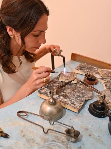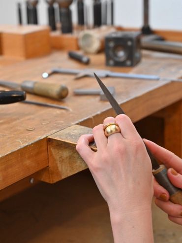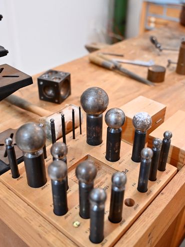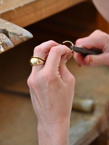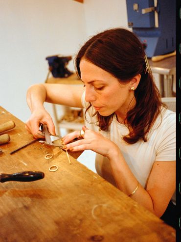 Katelin: I design and hand make custom jewelry, which is often engagement rings and wedding bands, as well as pieces to mark other significant life occasions. I appreciate the personal aspect of working directly with a client to make a piece that is intimately meaningful to them. While I enjoy sourcing the perfect diamond or other stone, I also love working a client's heirloom diamond, giving it new life in a new piece. I hand make my pieces with recycled gold in my studio via hand sawing, soldering, hammering, filing and sanding.