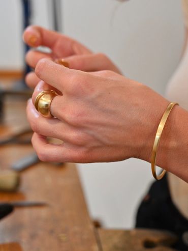 Katelin: The rich warm color. The malleability when working with it. The fact that it doesn’t tarnish, and yet it does change in subtly beautiful ways as it’s worn. It comes to life when it’s worn regularly.