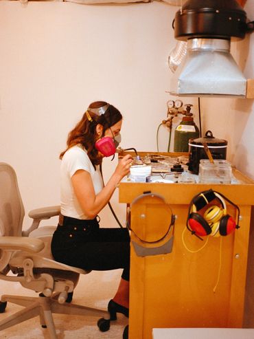 Katelin: I studied Jewelry & Metalsmithing at Rhode Island School of Design. I went to art school imagining I would study painting or illustration, as that was my background, with a particular affinity for figure drawing. During my foundation year in 2006/07, I took an elective class in the Jewelry & Metalsmithing department, and instantly fell in love with the tools and process in a way that I had never experienced with other modes of making. Using a torch and a tiny hand saw for the first time was a life changing moment for me. After graduating in 2010, I set up shop in a small studio apartment in New York and started taking on custom commissions. I have been doing that since, though am now back home in California.