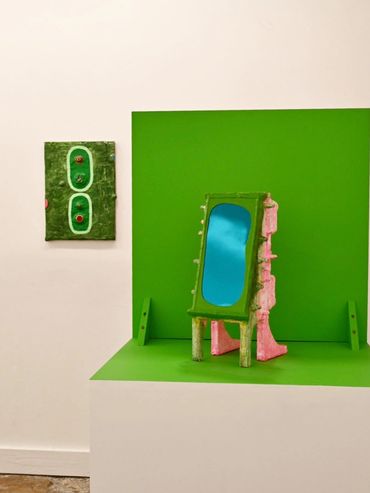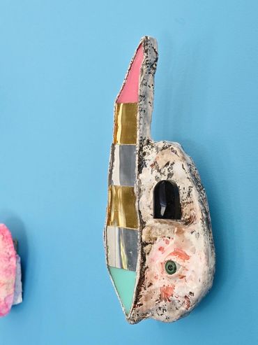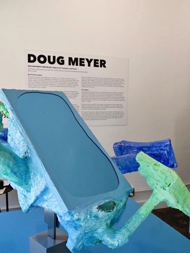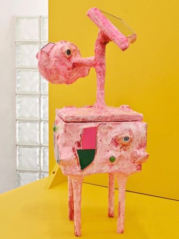 Rhett: Doug Meyer’s Enchantment Emporium: Objects for Pixies and Tricksters is our first solo show and with a strong focus on objects over paintings. All of the works are really architectural and space craft like. Although many serve specific purposes related to peace, healing and a watchful eye. They also display as extremely playful new age outsider, pop art with references to Dali and Corbusier. Meyer’s practice centers around his surreal lens of storytelling, intertwining real and fictional people, places and events that weave his world-building tales into a suspended reality. The show is open until March 18th.