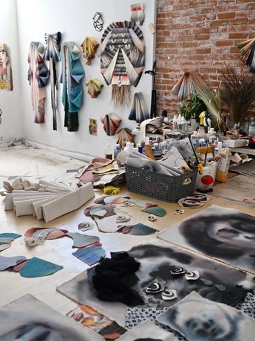 I started working on unstretched canvas, cutting up my paintings and using them to make collages in 2012. At that time I moved from New York to Los Angeles and had a creative breakthrough when I started really experimenting with what I could do as I opened up my process to more dimensional forms.